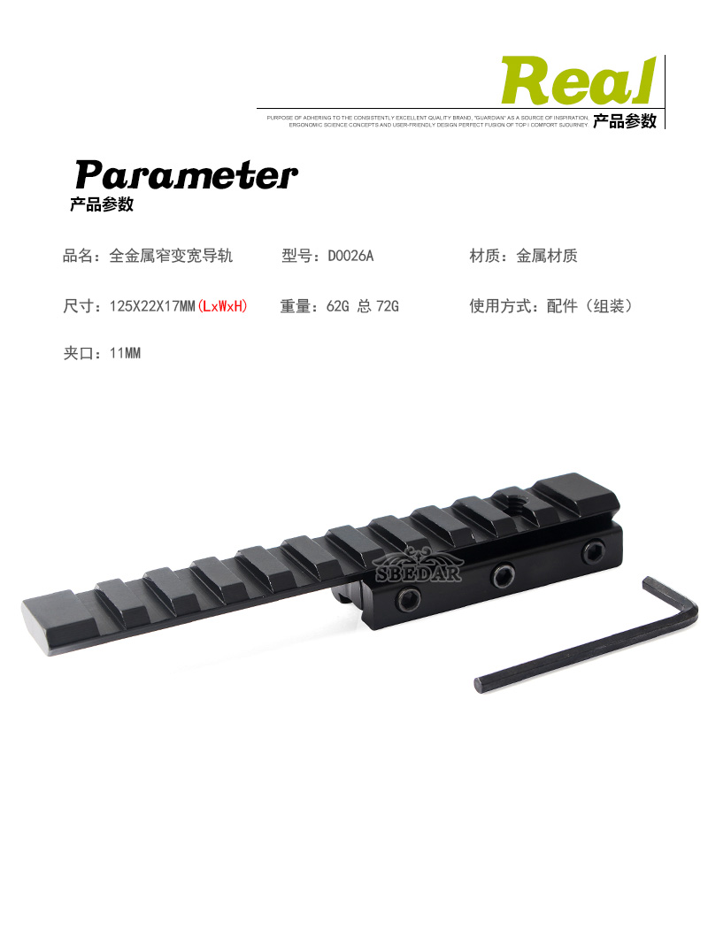 20毫米顶部导轨可安装范围、瞄准器、电筒、激光
