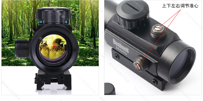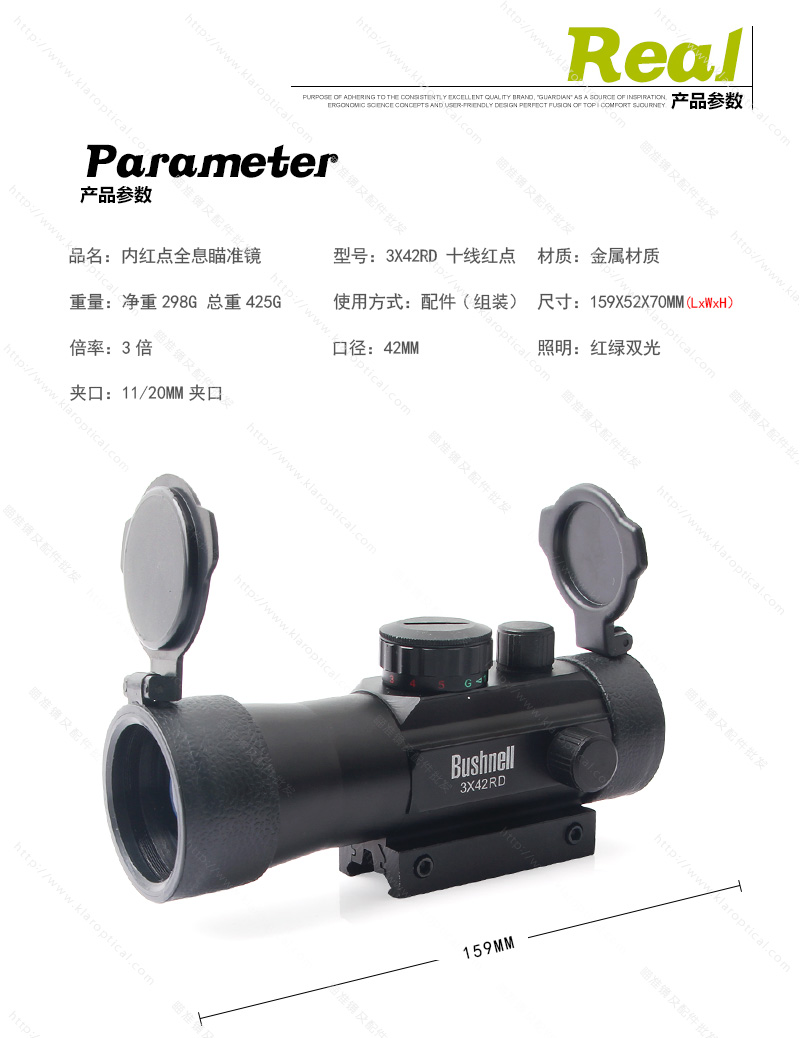 该范围可配合10mm-12mm导轨和19mm-22mm(改变底部适配器的方向),该望远镜没有可调的视差,具有固定的3倍放大率,因此可观察面积不大,LED(发光二极管)眼睛100%安全,黑色阳极氧化铝体
