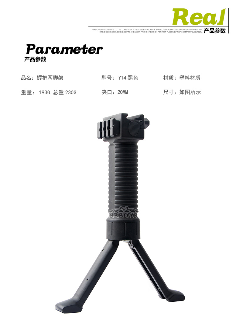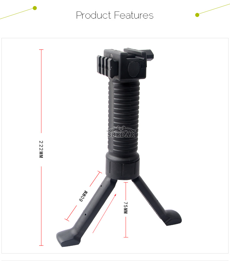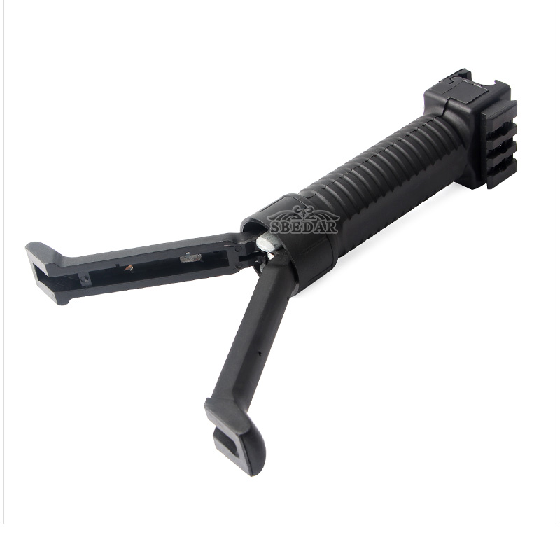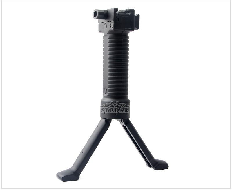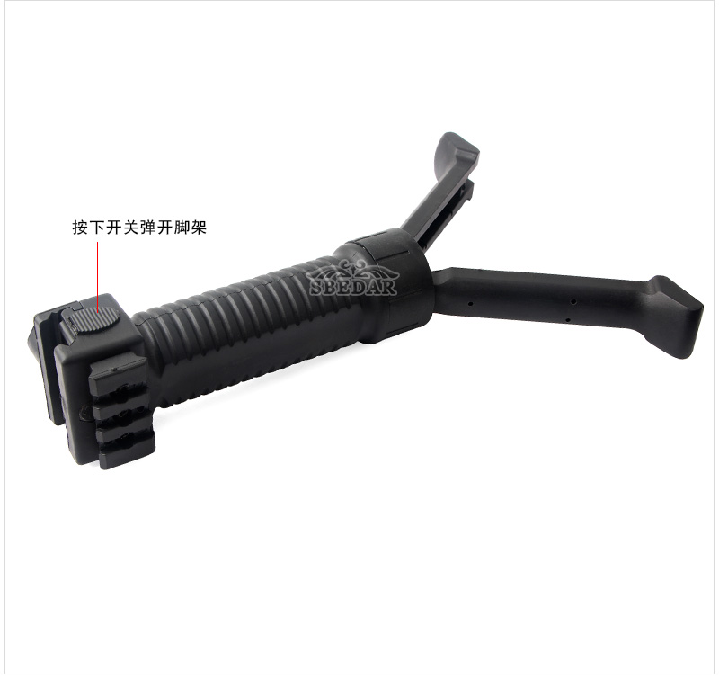 按下按钮解锁Bipod Legs,并收回弹簧加载的腿,推回。