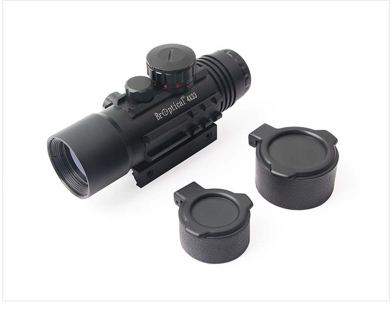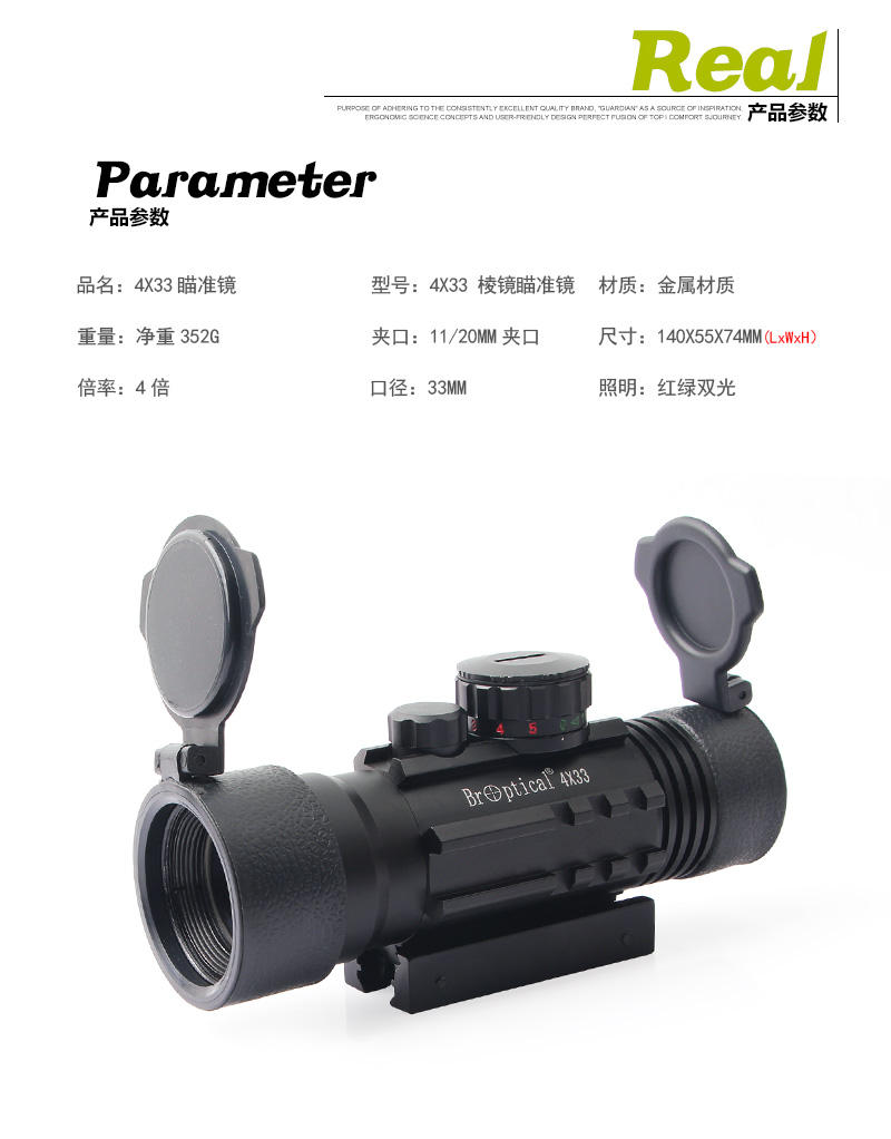 4x33鱼骨弹盖金属4倍棱镜密位分化户外抗震探测瞄准镜光学器具