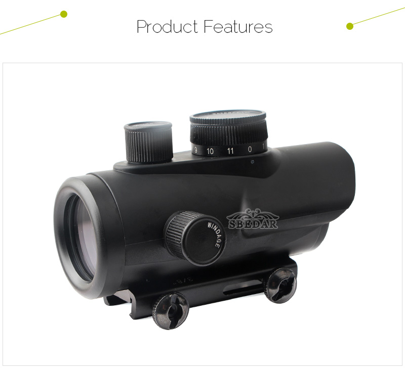 采用11档亮度调节的1x30MM红点瞄准具,适用于11mm和20mm钢轨安装