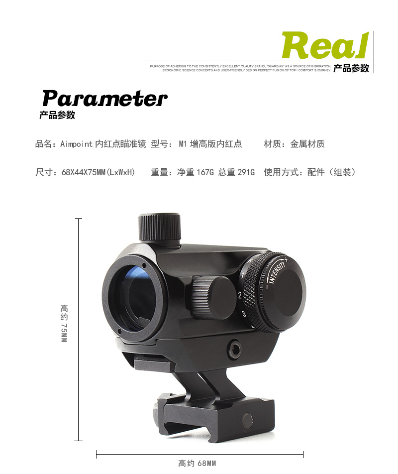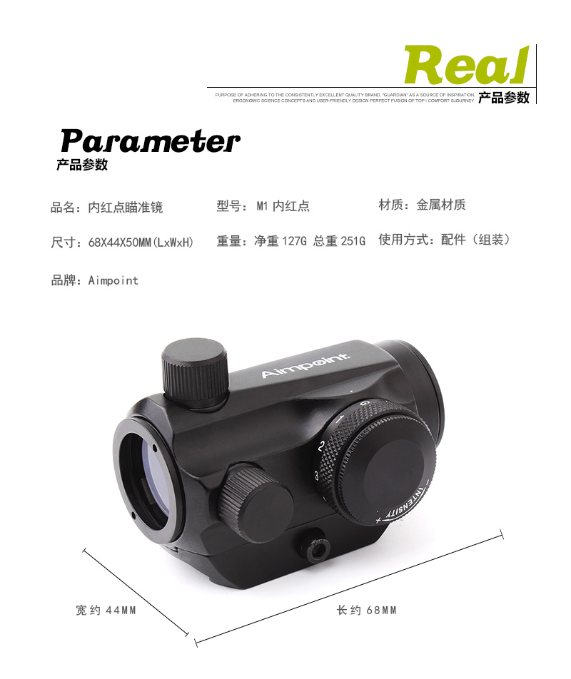 倍数:1倍口径:22mm灯光:红绿点夹具宽度:20mm材料:铝合金重量:120克一件50个