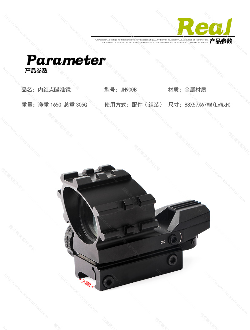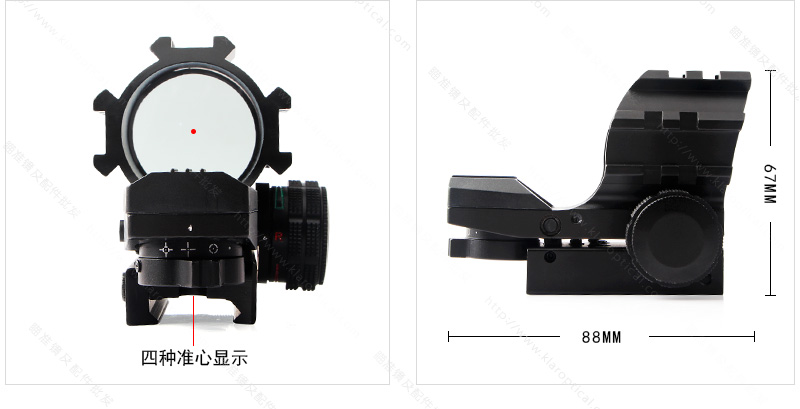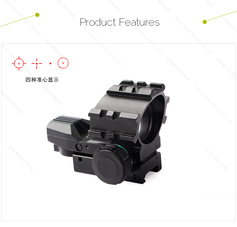 无内胎设计,带33mm反射镜光圈,视野开阔,适用于移动目标的正常和快速射击。