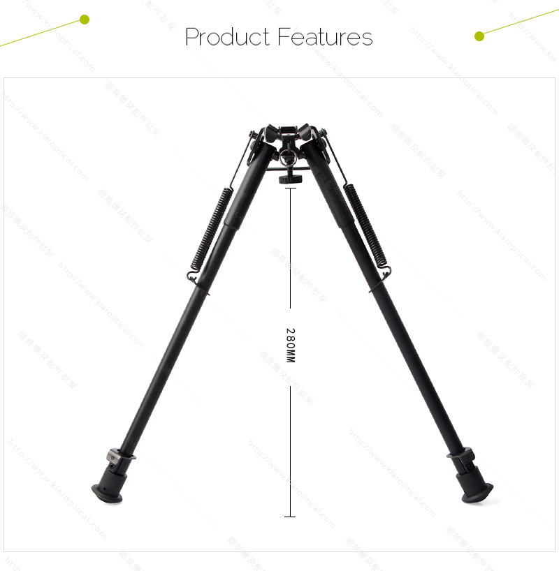 这个两脚架是由最好的飞机级铝和材料双脚架功能缺口锁定腿,旋转枢轴苏在不平的地面或不同的拍摄条件,橡胶脚,保护垫对双脚架,以不损害