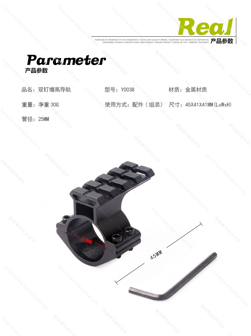 40毫米长标准导轨,适用于各种附件的连接。