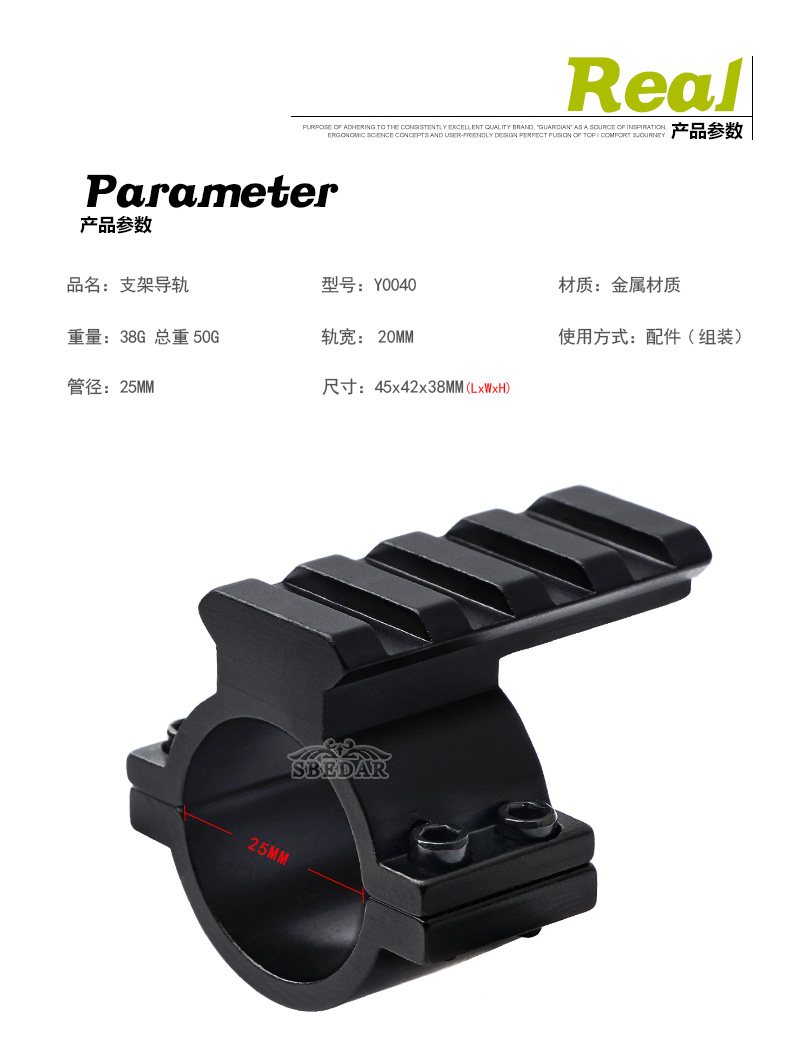 40毫米长标准导轨,适用于各种附件的连接